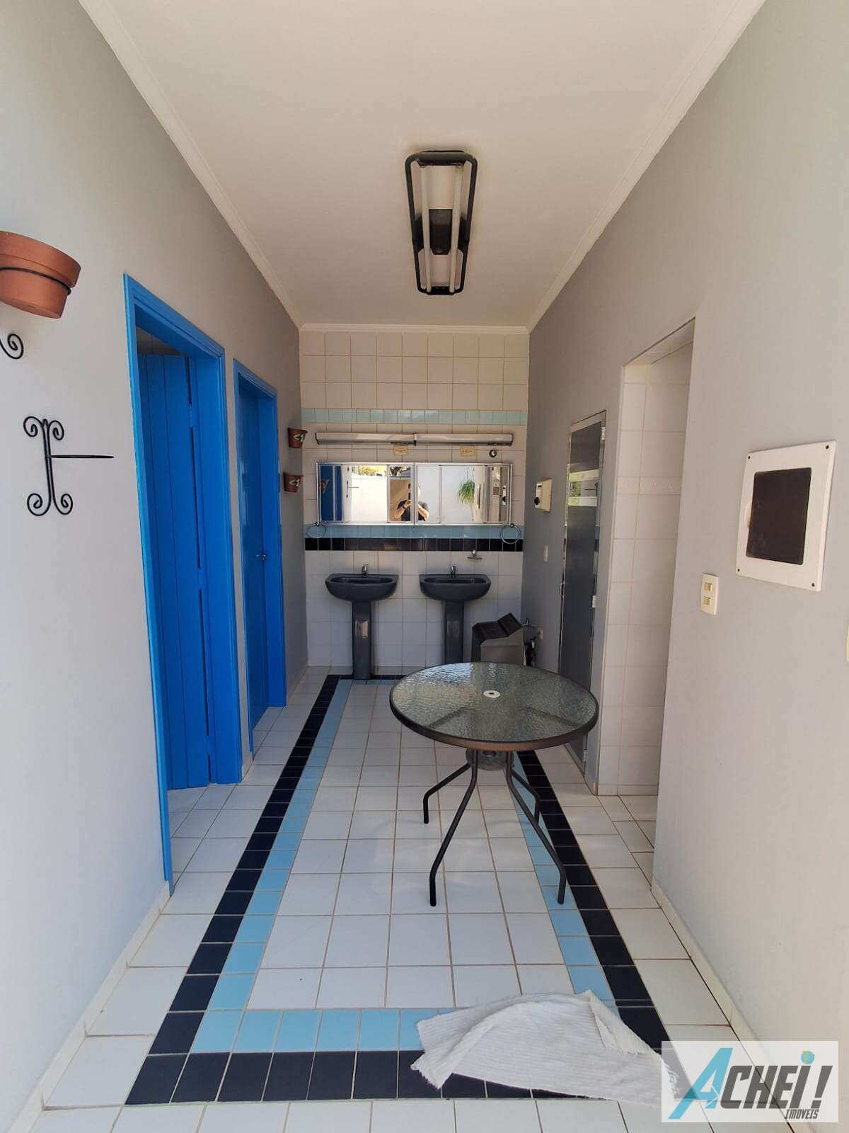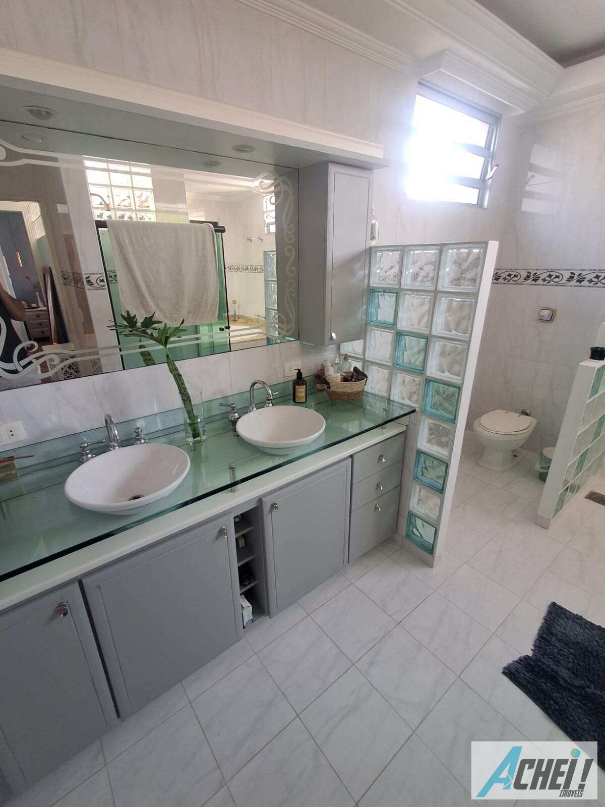 Banheiro social com gabinete e box blindex